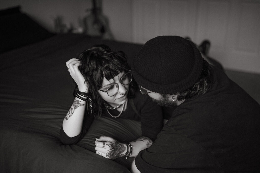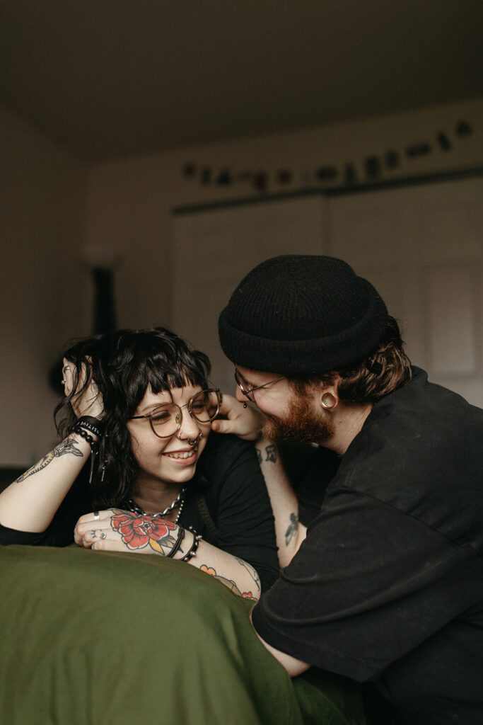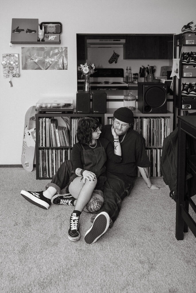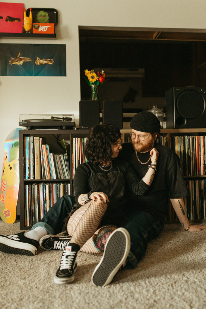 For Lauren and Jer, that meant getting comfy on their couch the way they always do. Having an activity, even something as simple as pulling records, gives you something to settle into, and it shows in the photos.